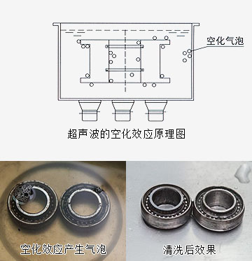超聲清洗基于超聲空化的作用,當(dāng)超聲波的形成氣泡后突然破裂(閉合)的瞬間能產(chǎn)生超過1000個(gè)大氣壓力,這種連續(xù)不斷產(chǎn)生的瞬間高壓強(qiáng)烈沖擊物件表面,使物體表面及縫隙中的污垢迅速剝落,從而達(dá)到物體表面清潔凈化的目的。